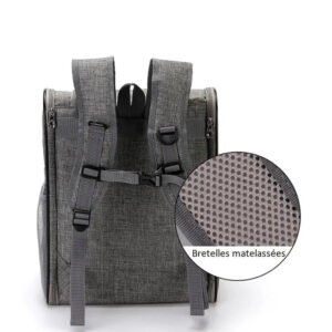 Le bien-être du propriétaire est tout aussi important. Le sac à dos pour chat est doté de bretelles rembourrées et ajustables, d’un dos matelassé respirant et, sur certains modèles, d’une ceinture ventrale pour répartir le poids uniformément. Ces détails garantissent un port confortable, même sur de longues distances.