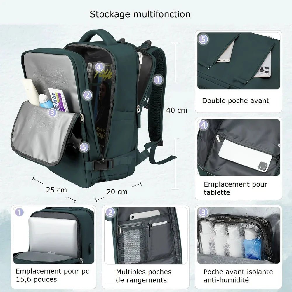 Conforme aux dimensions exactes des bagages cabine autorisés gratuitement par Ryanair, ce sac t’évite les frais de bagage supplémentaire. Il se glisse facilement sous le siège tout en offrant une bonne capacité de rangement.