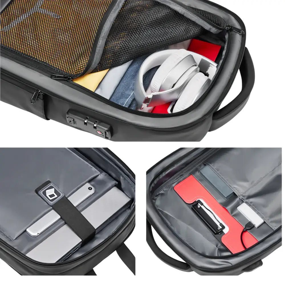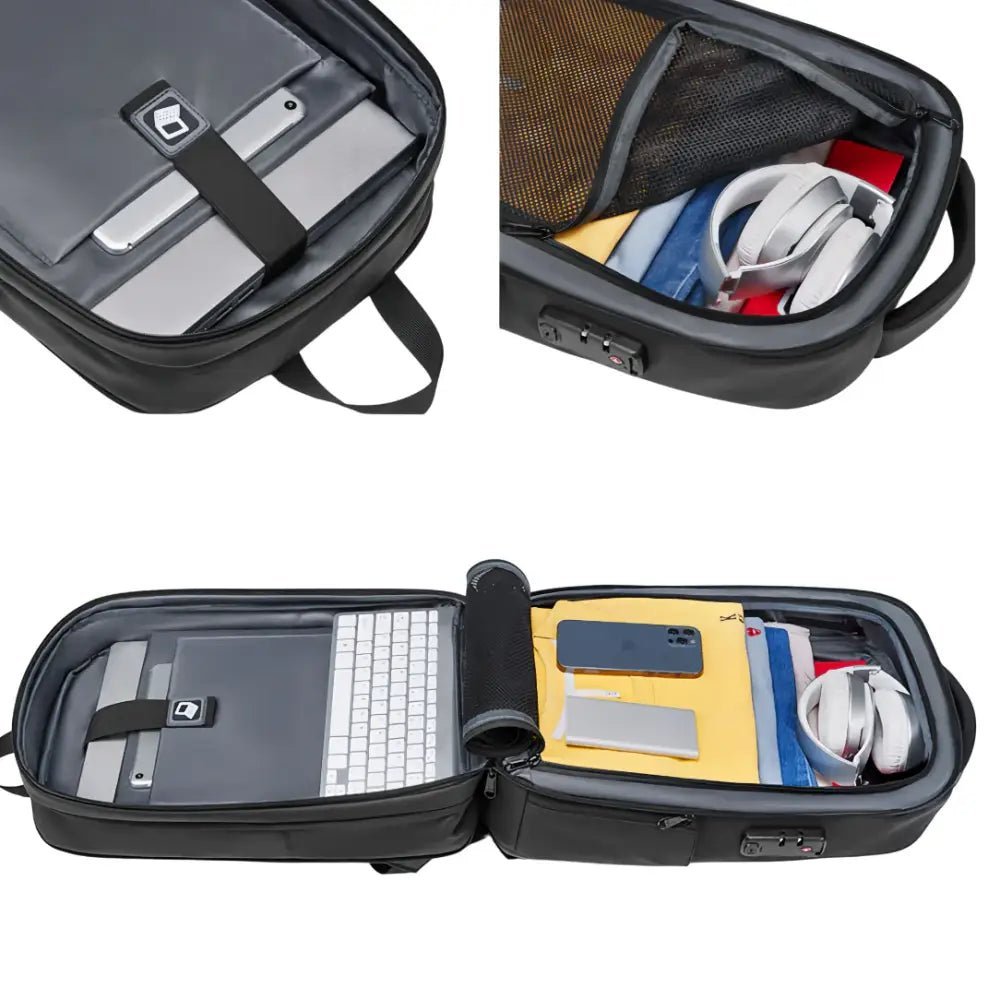 • Technologie : bretelles réglables / emplacement pc jusqu'à 16 pouces et ipad 14 pouces (au dos du sac) / port USB / cadenas antivol TSA à code