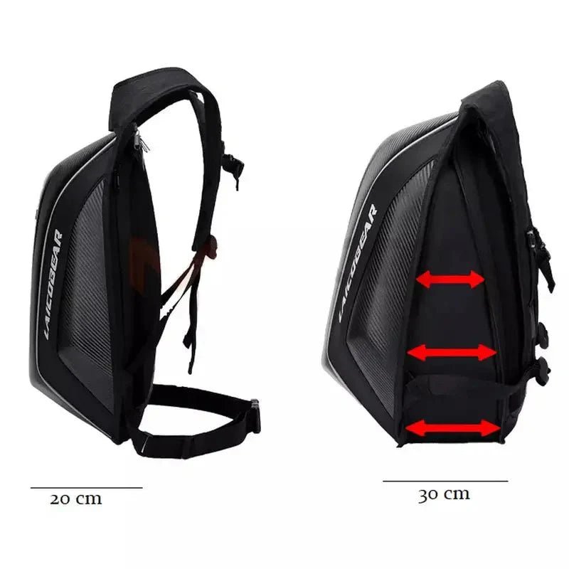 L’esthétique de ce modèle repose sur son design « Streamline » aux lignes acérées et à sa finition mate ou imitation carbone. C’est l’accessoire idéal pour celui qui recherche un look futuriste en parfaite adéquation avec une machine sportive ou un roadster de caractère. En choisissant ce sac à coque, vous optez pour une signature visuelle qui privilégie la puissance et l’innovation, offrant une solution de transport qui valorise votre passion pour la belle mécanique.