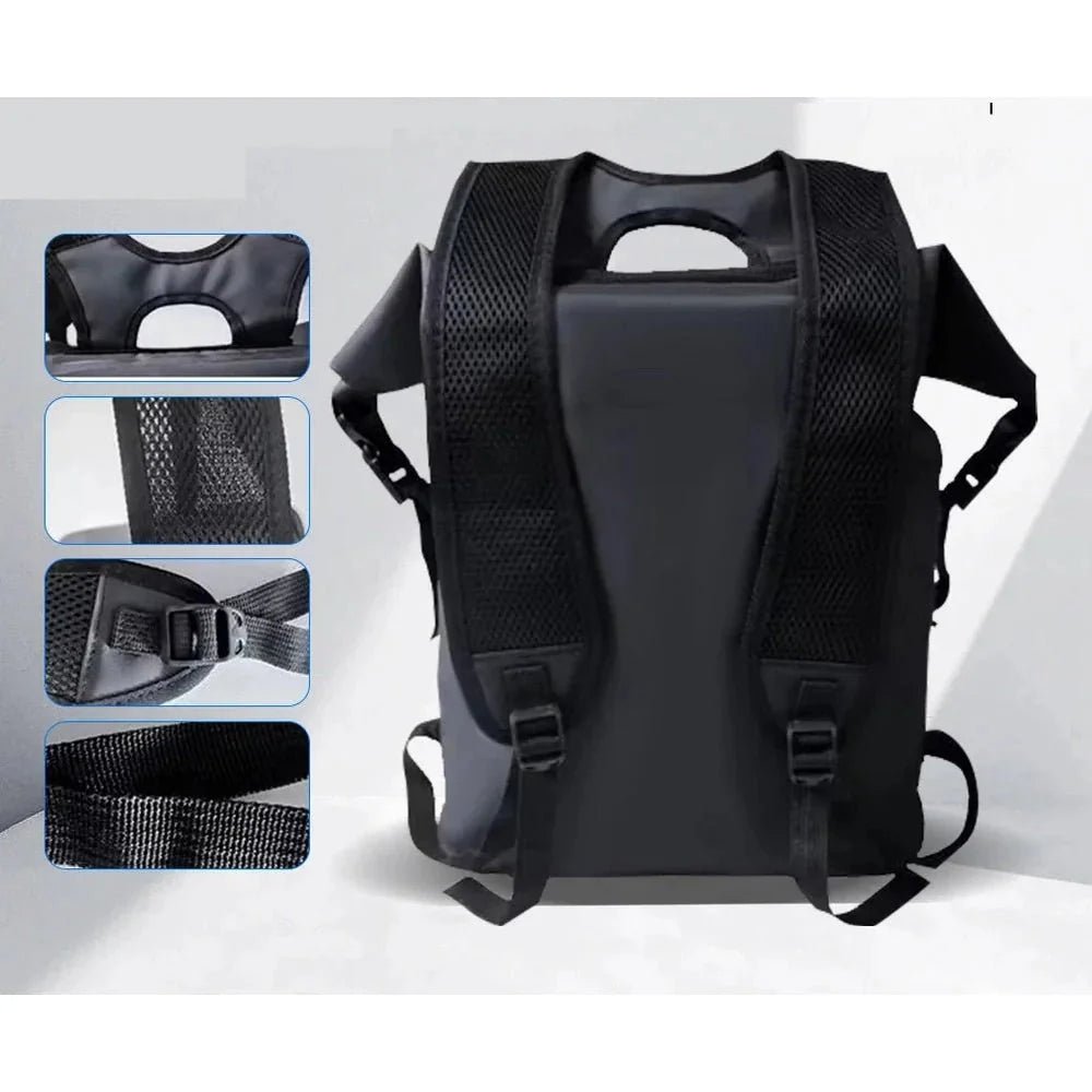 Fabriqué en textile haute densité traité anti-moisissures et résistant au chlore, ce sac intègre des panneaux en mesh stratégiques pour une évacuation naturelle de l’humidité. Son fond est renforcé par une base étanche pour être posé sans crainte sur les sols mouillés des douches. Sa force réside dans son ergonomie : des bretelles ajustables et un panneau dorsal drainant qui évite toute accumulation de chaleur, alliant une solidité de grade sportif à un confort total, même lorsque le sac est chargé de matériel lourd.