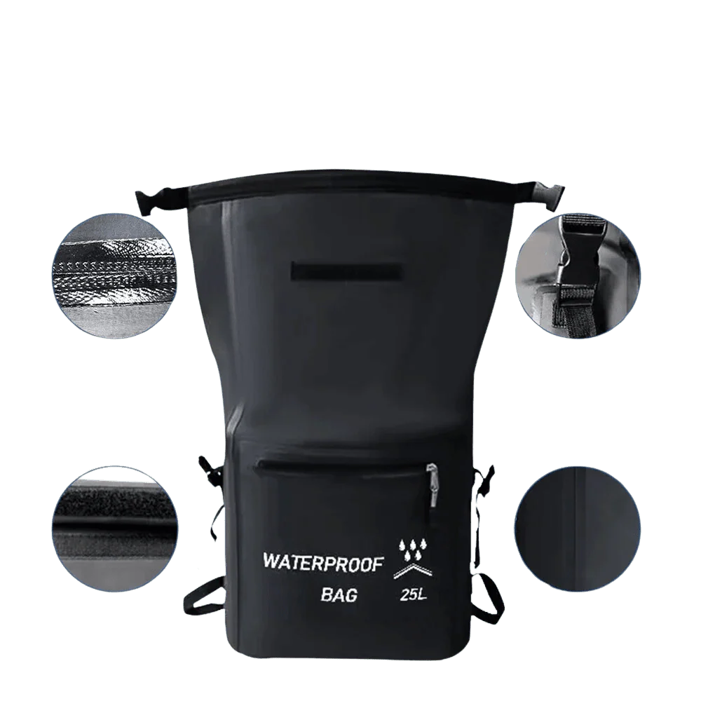 • Type de fermeture : roll top, clips & fermeture éclair étanche
