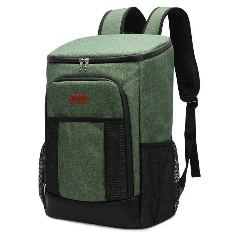 Fabriqué en polyester 600D haute densité résistant aux déchirures, ce sac intègre une doublure en PEVA certifiée de grade alimentaire. Cette membrane interne est soudée par haute fréquence pour garantir une étanchéité totale : aucune fuite de condensation ne viendra mouiller votre dos. Pour compenser la charge des bouteilles et des accumulateurs de froid, le système de portage est doté de bretelles ergonomiques matelassées. Ce modèle combine une solidité de grade expédition à une logistique de précision, incluant des poches dédiées pour les couverts et les accessoires secs.