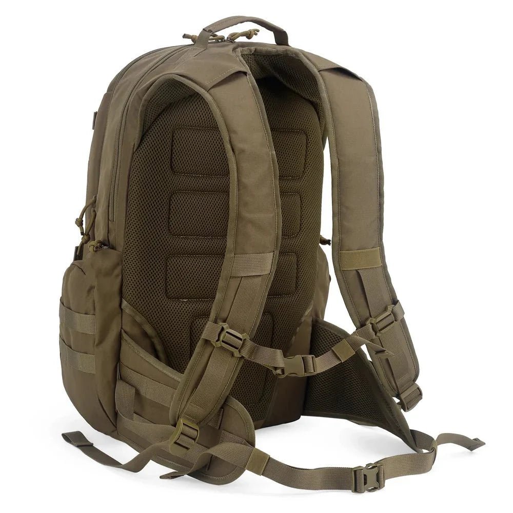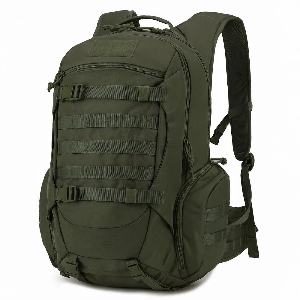 Fabriqué en textile Oxford 600D ou 900D haute densité avec revêtement déperlant, ce sac est conçu pour résister à l’abrasion, aux déchirures et aux intempéries. Il est équipé du système MOLLE intégral, permettant de fixer des pochettes additionnelles ou du matériel externe en un clin d’œil. Le panneau dorsal est rembourré et respirant pour limiter la transpiration, tandis que les bretelles ergonomiques et la ceinture ventrale assurent une répartition optimale du poids. Ce modèle combine une solidité industrielle à une modularité sans limite pour une autonomie totale en extérieur.