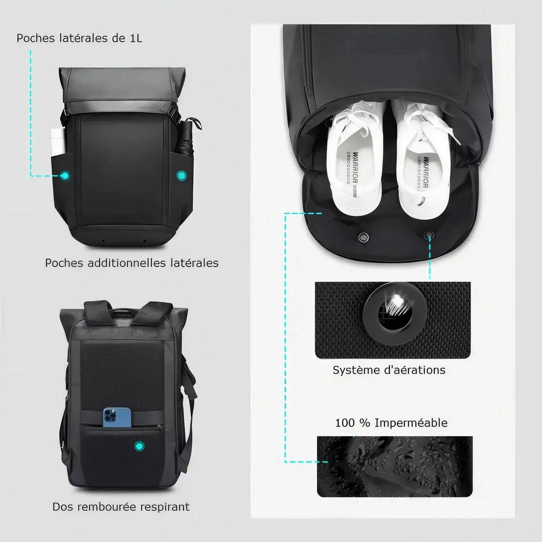 Fabriqué en textile haute densité avec revêtement déperlant intégral, ce sac est conçu pour résister aux infiltrations d’eau les plus tenaces. Il dispose souvent d’une fermeture par enroulement (roll-top) ou de zips étanchéifiés pour une barrière totale. Les bretelles sont ajustables pour un portage stable et les parois sont renforcées pour protéger le contenu des chocs urbains. Équipé de détails réfléchissants pour améliorer votre visibilité nocturne, ce modèle combine une solidité éprouvée à une légèreté structurelle pour des trajets fluides et sécurisés.