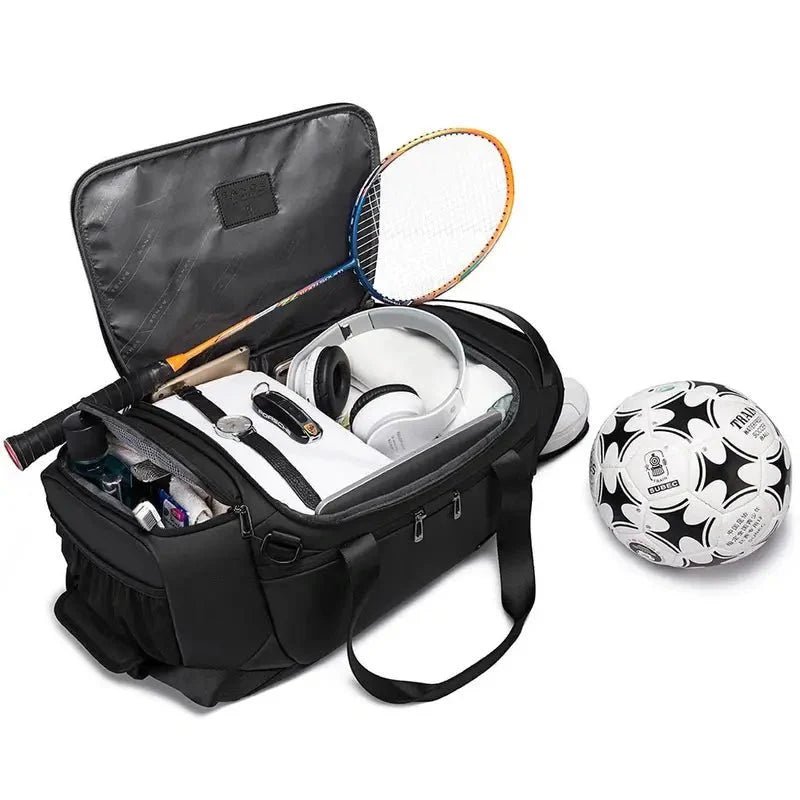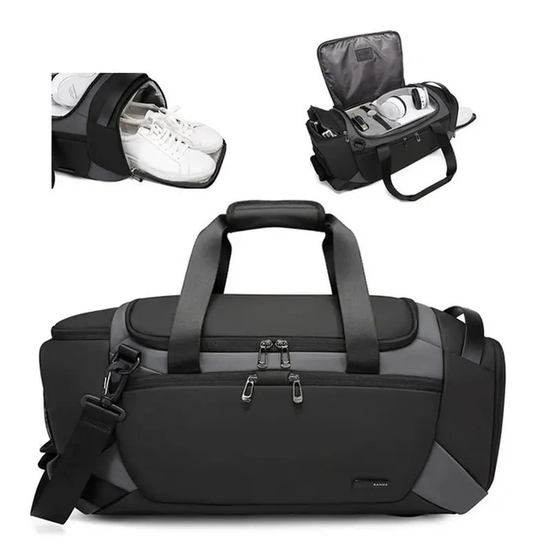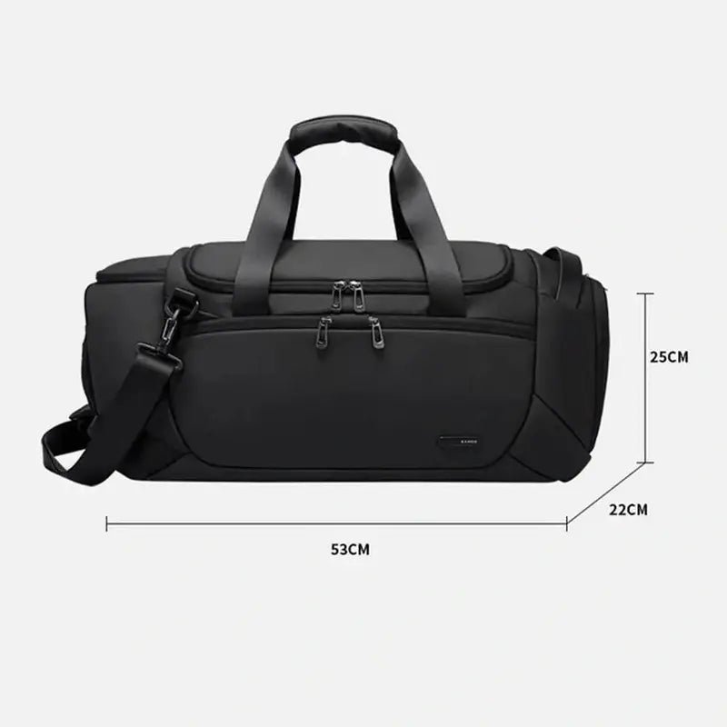 Fabriqué en Nylon 840D anti-abrasion avec un revêtement intérieur hydrophobe, ce sac garantit une durabilité exceptionnelle face à l’humidité des douches et à l’usure quotidienne. Le tunnel à chaussures est équipé d’œillets d’aération en métal pour assurer un flux d’air constant et un séchage naturel. Les fermetures éclair à double curseur sont renforcées pour supporter les ouvertures répétées, tandis que la bandoulière ajustable et les poignées ergonomiques offrent un confort de portage total. Ce modèle combine une robustesse industrielle à une légèreté structurelle pour un transport sain, ordonné et professionnel.